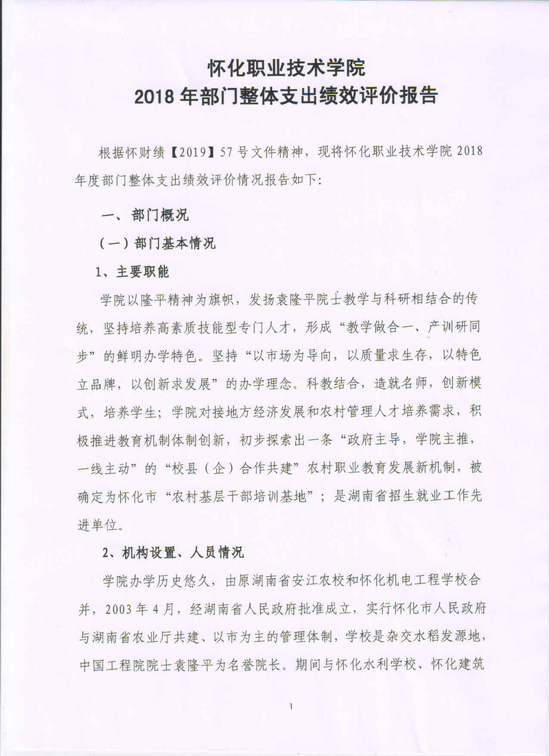 2018年部门整体支出绩效评价报告