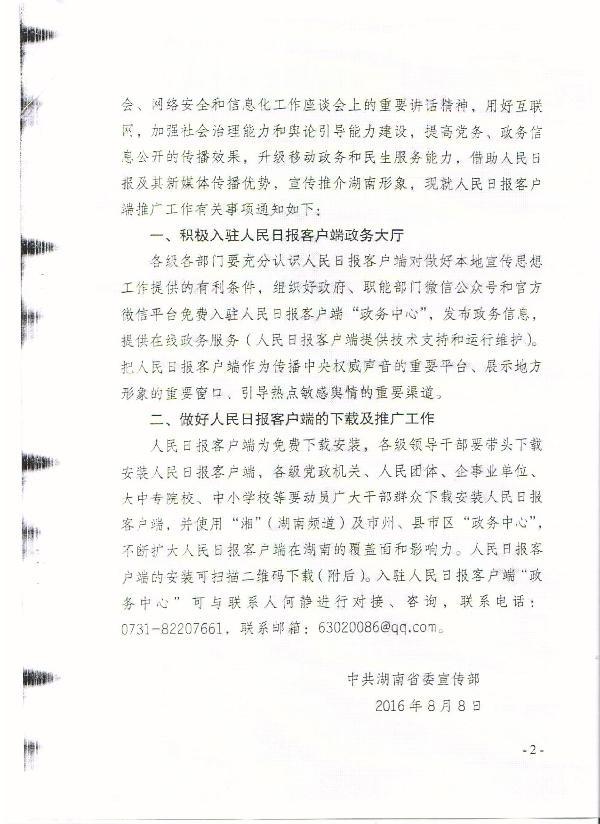 转发中共湖南省委宣传部《关于做好“人民日报”客户端推广工作的通知》