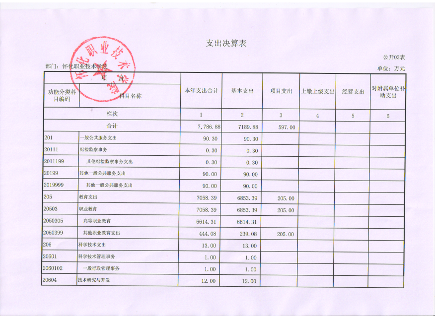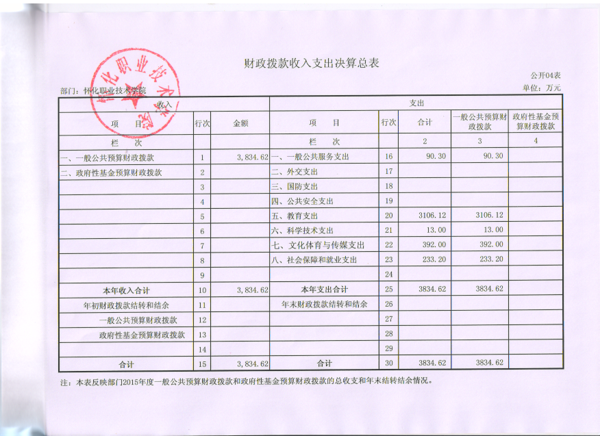 怀化职业技术学院2015年度部门决算公开说明