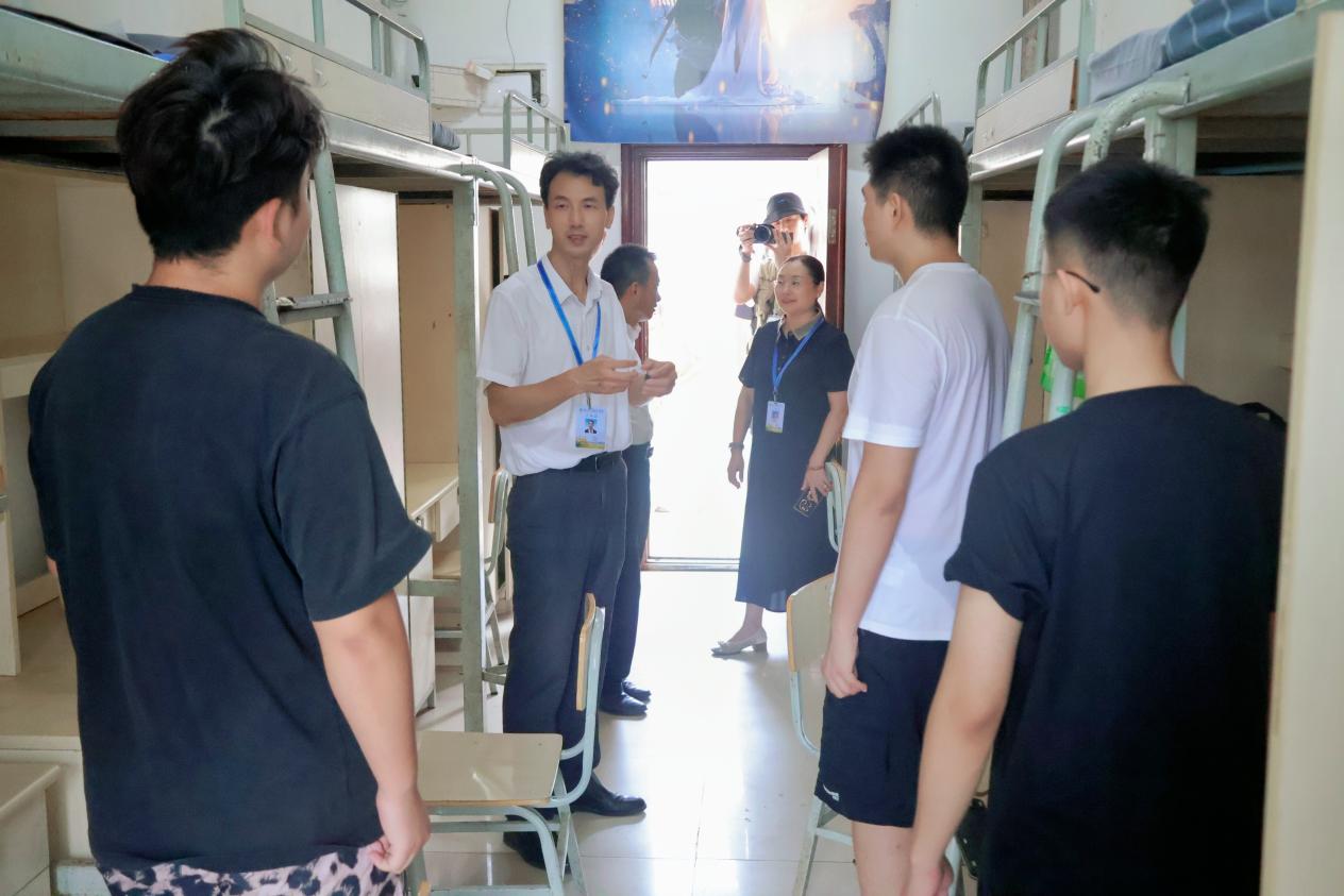 “同学们来自哪里?”“报到是否顺利?”“对学校环境适应得怎么样?”校领导分别深入学生宿舍,与新生亲切交流,并细致询问住宿体验、饮食适应等情况,主动倾听新生在入校初期的实际需求。