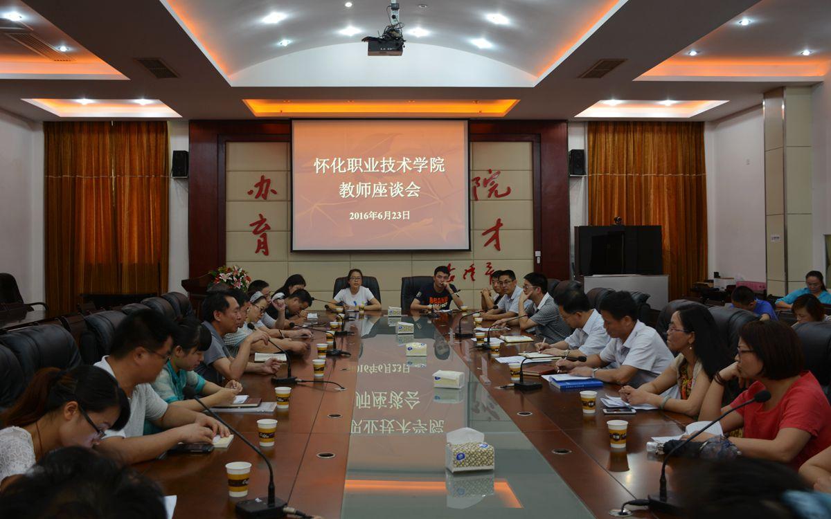 2016年6月23日下午三点,我院教师座谈会在学院多功能厅举行。会议由主管教学的张圣喜副院长主持,学院党委书记胡佳武、院长王聪田亲临座谈会,教务处、组织人事处、办公室负责人及老师代表等二十一人参加了此次会议。
