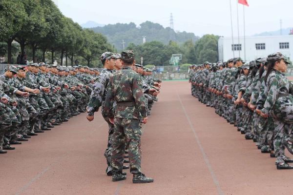 在这个严格的军训中,一位军姿很标准,白白皮肤的男生引起我们的注意。在跟班主任的交谈中,他原来做过嗓子上的手术,他闭着眼睛一直强忍着痛完成这场虽苦亦甜的军训生活,看起来他身板瘦小,但内心的强大我相信五年之后,他一定会回味这次军训,这一遍又一遍枯燥乏味的动作,一句又一句不得反抗的命令,这一切都不能让他退却,因为他会战胜自己,超越自己,挑战自己。