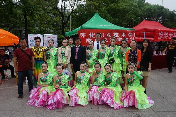 我院的歌舞表演《春之声》和朗诵《我骄傲,我是中国人》展现着职业院校学生朝气蓬勃、得体大方的精神面貌,吸引上千市民驻足欣赏。我院各系部的教学特色成果均在启动仪式上展出,如商贸管理系的茶艺展示、电子电气工程系的家电维修、人文科技系的服装设计展、机械与汽车工程系的模具制造、信息与艺术设计系的室内设计图片展,动物科技系还特意印发了有关禽流感的科普传单,为聚集的市民们耐心讲解。